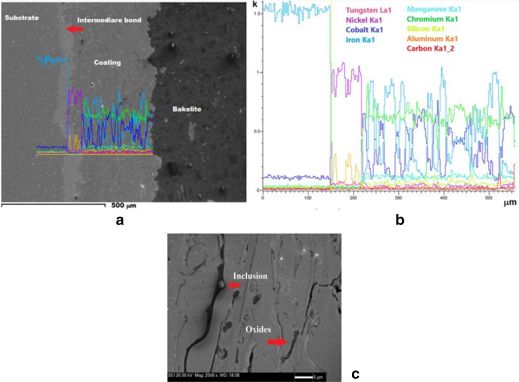برخی ترکهای میکروسکوپی در پوششها مشاهده میشود، اما افزودن عناصر آلیاژی بهطور قابلتوجهی ویژگیهای پوششها را بهبود داده است.